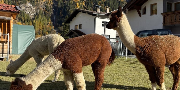 Erleben Sie entspannte Alpaka Wanderungen durch die schöne Berglandschaft von Umhausen.